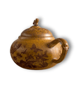 Традиционен китайски исински чайник от пурпурна глина Zisha (紫砂) — хармонично съчетание на майсторство, красота и уют.Ръчна изработка, във форма на тиква, украсен с рисунка на полски цветя и пеперуди, което му придава особена топлина и домашна атмосфера.