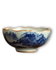 Изискана порцеланова чаша в класически стил Qinghua – бяла с тъмносиня ръчна рисунка. Този стил произхожда още от династията Юан и се счита за един от най-изтънчените в китайския порцелан.